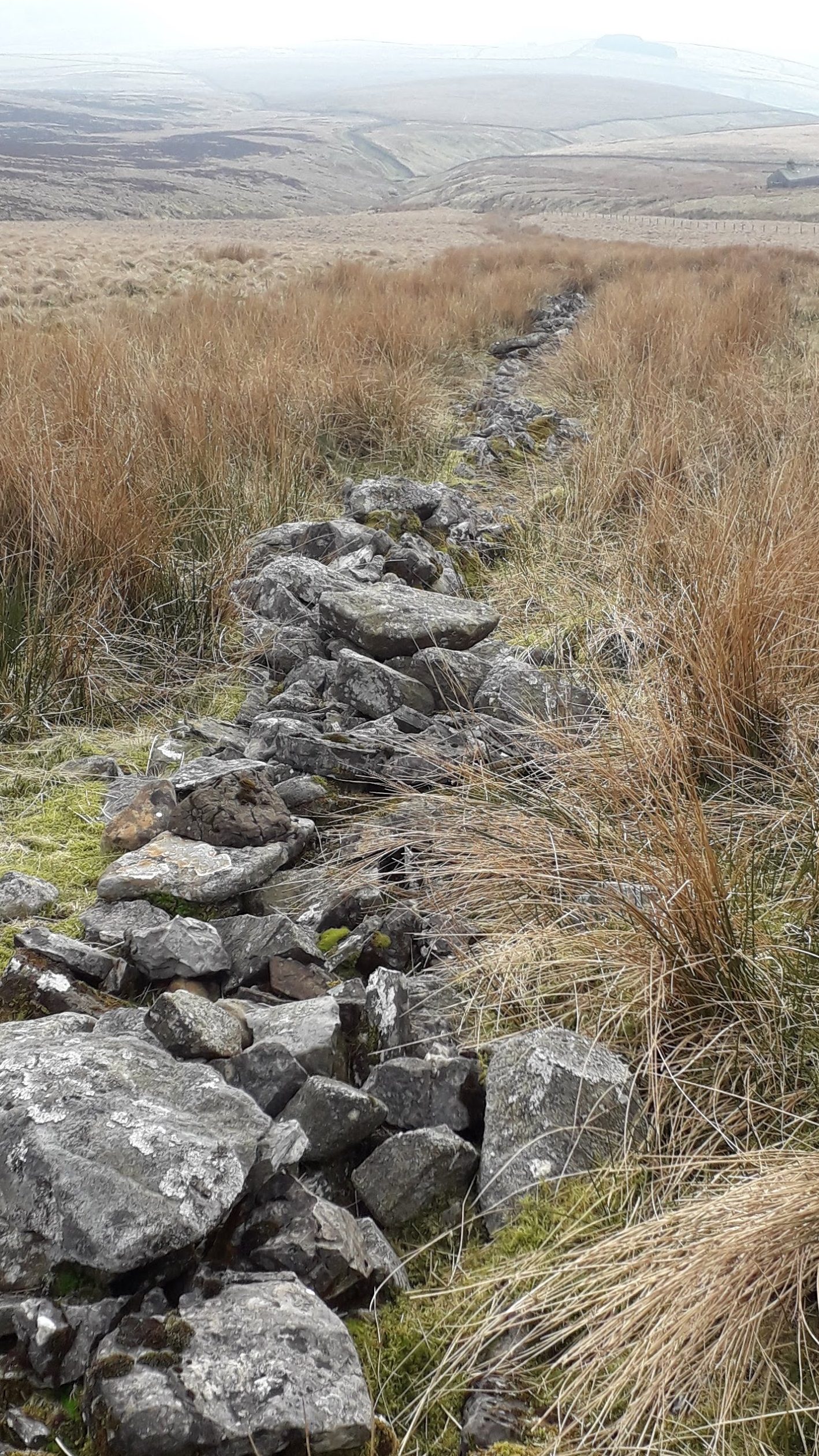 So how can you be sure the wall is the right wall, the one that leads you to where you want to go? Well, check it’s direction* – have you got a compass handy to do this? This particular wall ran sort of south west-ish, so we could easily check this quite roughly with a compass. (Bearings – another whole chapter of learning, best done outdoors but south west, well that’s half way between 180˚ and 270˚ ) If the wall had been running east to west, then alarm bells would have rung – wrong wall! Another check you can do, is to look at your wall in relation to other features around you… does it match up? For example, it could be parallel with an edge, a stream, a valley, a road? It might have a kink in it? There might be a sheep fold near it that fits? The slope you’re on might give you a clue too? Is the wall running downhill? Or on the flat? etc.