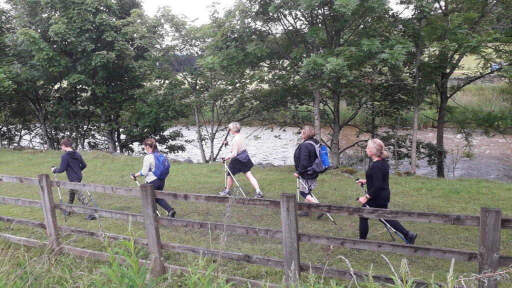 My Yordic Walkers were complete beginners, so I started off by telling them a bit about the origins of Nordic Walking. Those Finnish skiers couldn’t have guessed that by training in the summer without skis but using their poles for upper body fitness, they would start a new sport that has taken Europe by storm! Nordic Walking is growing at a fast rate in the UK, and encouraged by a friend who was already qualified, I soon found myself enrolled on a training course. Now I am a qualified Nordic Walking Community Guide with eight new sets of poles, thanks to the kind donation from Settle Age UK, so we are up and running!